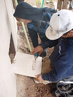 Our youngest son, nephew and grandson hunted for worms, dug, measured, drilled, hammered and generally had a wonderful time "helping" the older guys. They had a wonderful day.